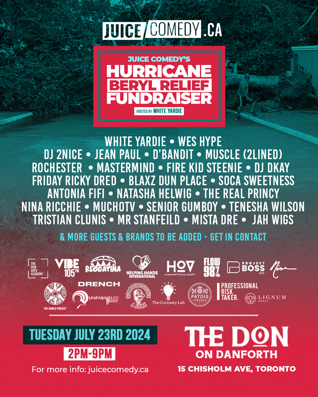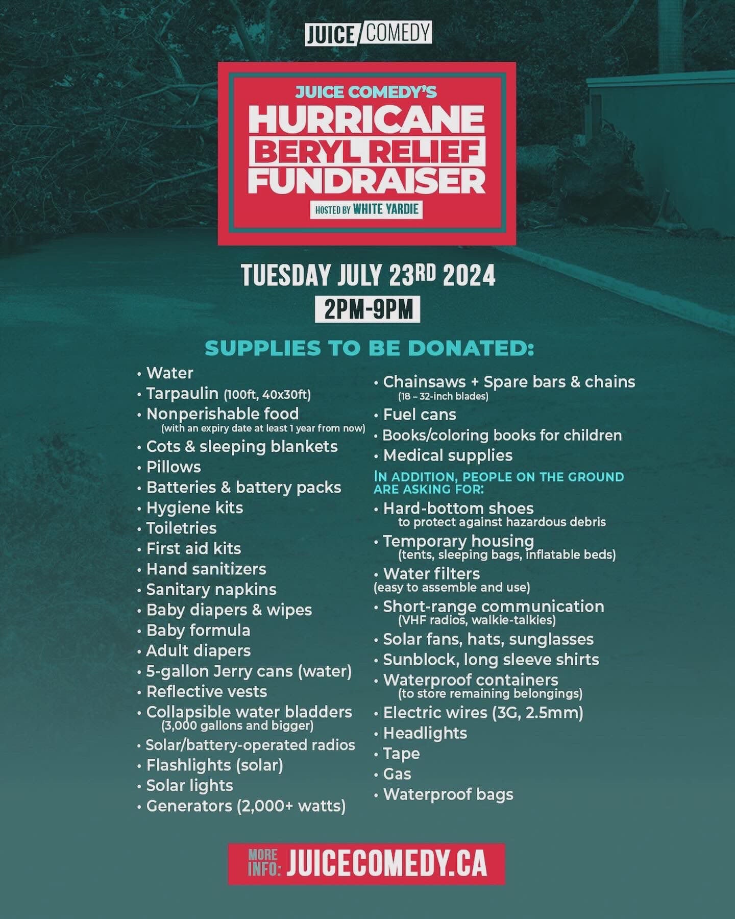 JUICE Comedy is a company rooted in providing Caribbean entertainment to international audiences. Our core audience consists of Caribbean individuals living in foreign countries who celebrate their culture through comedy. With deep family ties and strong business partnerships within the Caribbean community, in times of crisis we find it imperative to act and support those in need. In the aftermath of Hurricane Beryl we will be leveraging our platforms and those of our colleagues to gather aid and make a meaningful impact.